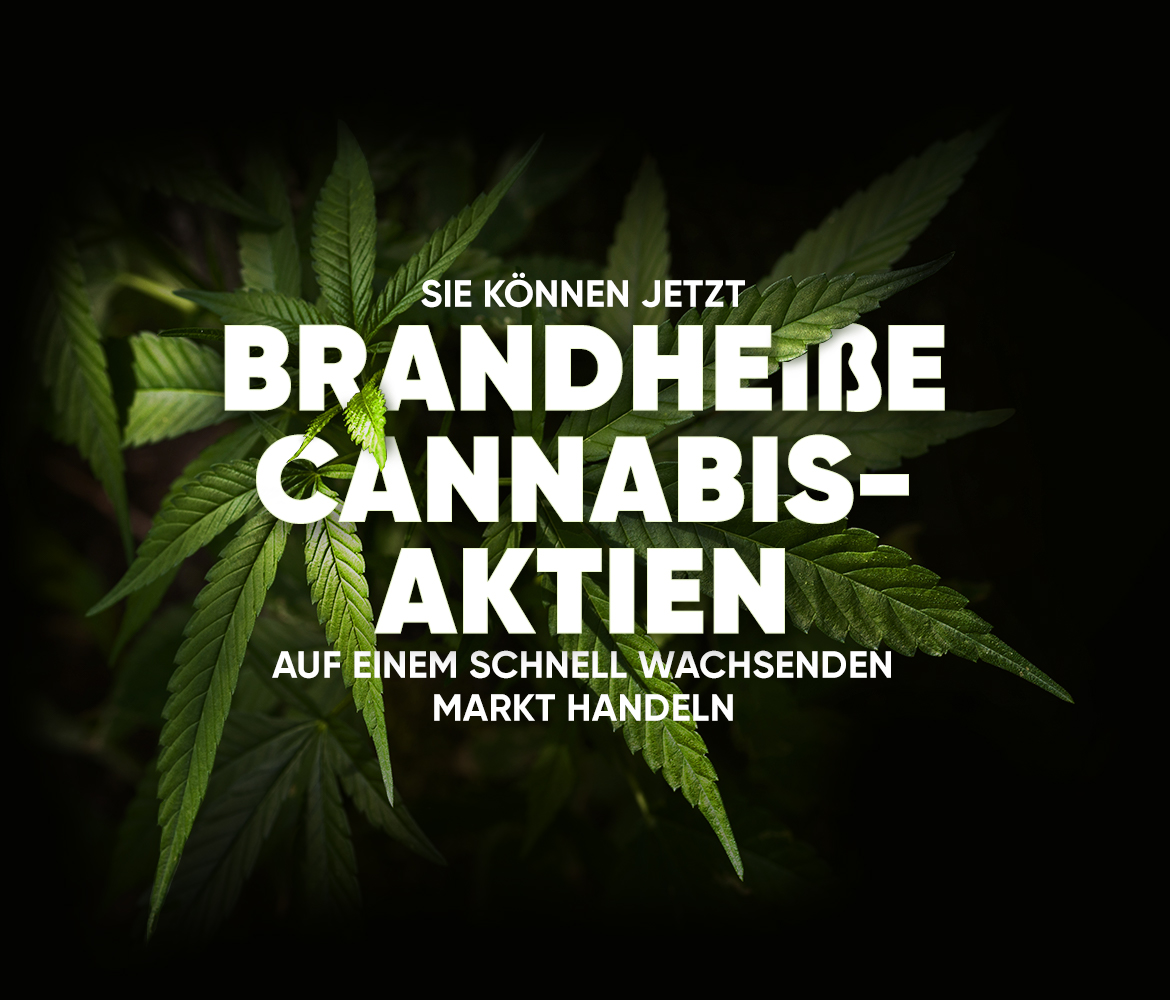 Wir geben Ihnen mehr Trading-Power! Zahlen Sie jetzt ein und handeln Sie CANNABIS-Aktien von Unternehmen mit einem Wert von Milliarden von Dollar!